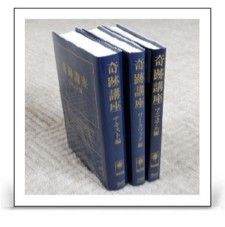 『奇跡講座』とは、一元論の形而上学的理論と心理学に基づく〈赦し〉の実践のための、独習用カリキュラムです。教科書としての「テキス ト」、実習用の「受講生のためのワークブック」、補助参考書的な「教師のためのマニュアル」の三部構成となっています。このカリキュラムの目的は、それを学ぶ者一人ひとりが自らの〈内なる教師〉につながるのを助けることであり、宗教の教典のようなものとなることは意図されていません。